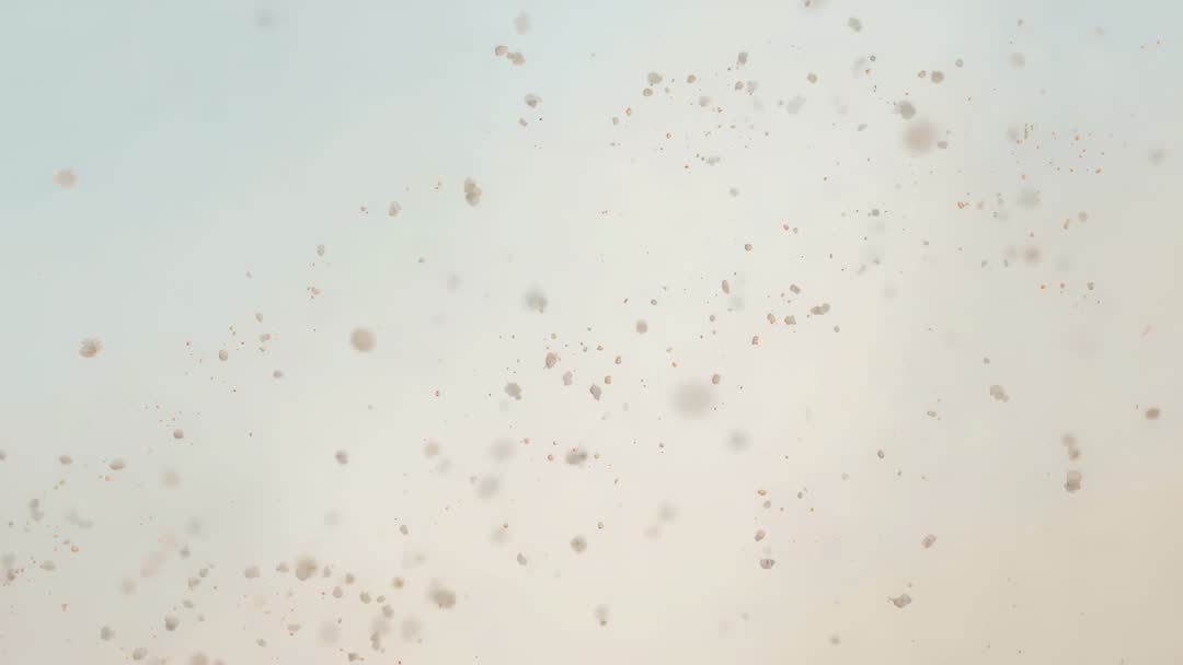 AI Generated Image. Slow-motion footage showing pale dust and fine particles drifting across soft cream-to-pale-blue gradient, creating gentle airborne dispersion, subtle bokeh, and layered depth. Minimal color palette and airy composition suiting backgrounds for title sequences, website headers, product promotions, social media stories, calming brand content, and environmental visualizations. Useful as overlay texture for transitions, intros, ambient loops, or motion graphics; suitable for blending with screen or multiply modes, color grading, slowdowns, and vertical cropping for reels. Works well paired with soft ambient music, nature sounds, or voiceover; ideal for illustrating concepts of dust, pollen, atmosphere, purity, cleanliness, nostalgia, or abstract motion.
