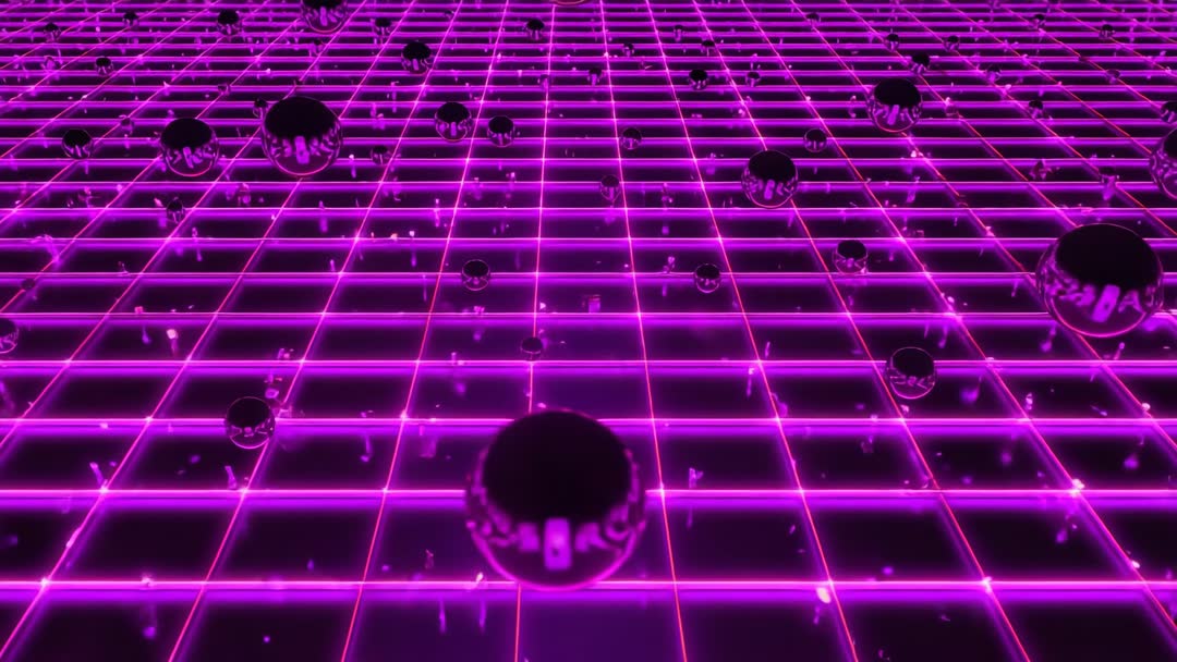 Floating Reflective Spheres over Futuristic Magenta Grid Video
