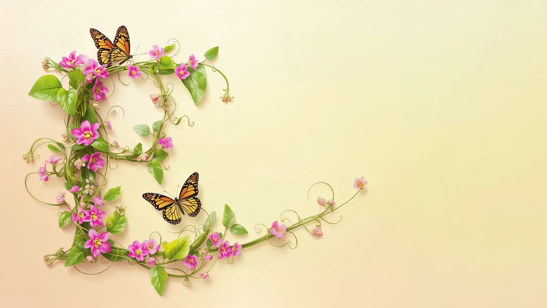AI Generated Image. An artistic animation of the letter B formed by a growing vine adorned with pink flowers and butterflies, set against a beige background. This elegant, nature-inspired design can be used for decorative purposes, gardening themes, DIY projects, eco-friendly brands, or as an educational tool for illustrating the beauty of biodiversity. Perfect for digital graphics, posters, invitations, and promotional materials.