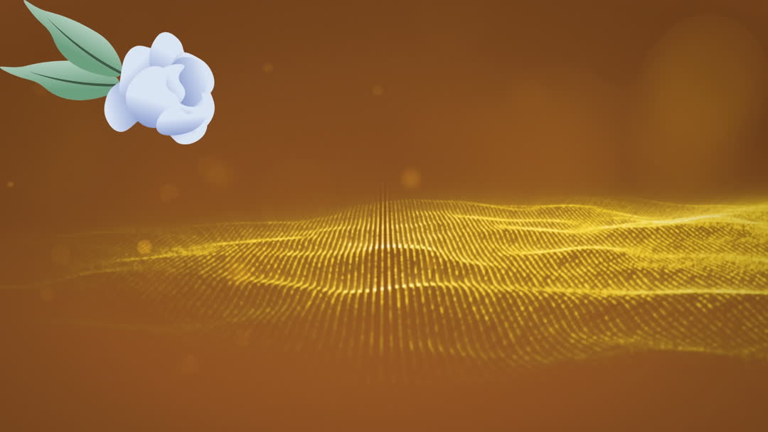 This digital art features an animation of a white flower set against glittering yellow waves on an orange background, creating an ethereal and artistic visual appeal. Perfect for use in animated projects, presentations, or as a backdrop in digital content aimed at conveying creativity and elegance.