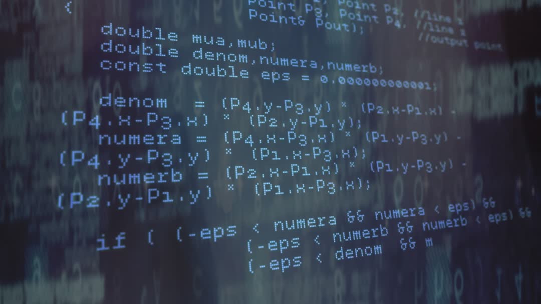 Rapid flash of blue-tinged code and binary digits illustrates modern technological environment. Ideal for use in projects related to software development, technological innovations, or illustrating high-tech environments in presentations.