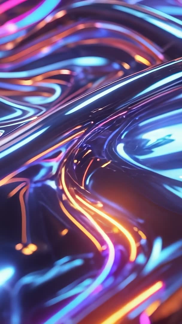 AI Generated Image. Video showcasing flowing neon liquid across glossy undulating surface, featuring shifting highlights and vivid blue and orange tones. Loopable 9:16 vertical format offering smooth cinematic motion and high-contrast reflections, ideal for mobile backgrounds, social stories, and vertical ads. Providing dynamic futuristic atmosphere for music visuals, VJ loops, tech product promos, UI transitions, and video intros. Close-up abstract texture creating depth and movement while maintaining space for overlay text, logos, or lower-third graphics.