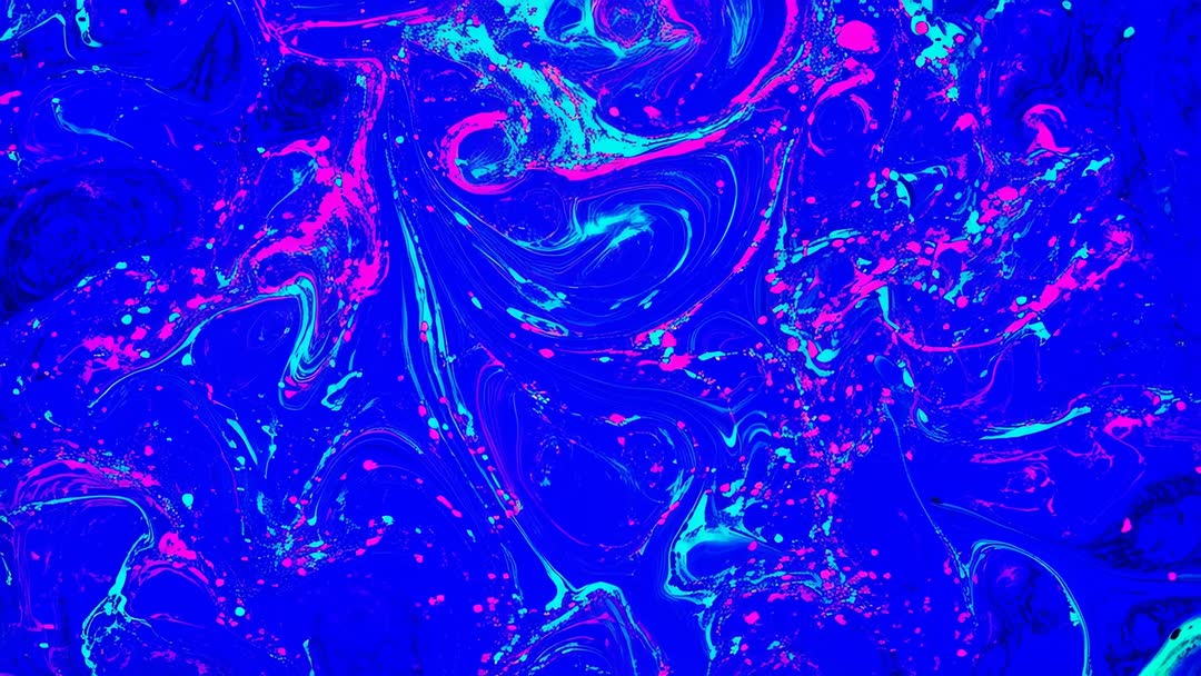 AI Generated Image. Creating immersive background for electronic music videos, club projections, livestream overlays, event visuals. Featuring flowing cyan ribbons, energetic magenta flecks, deep blue marble swirls blending for high-contrast psychedelic look. Working well for title sequences, brand intros, social media stories, adding kinetic color and glossy texture behind text. Supporting seamless looping and slow-motion playback for extended visual interest; recommending experimenting with color grading, blending modes, particle overlays to match mood. Delivering high-resolution filmic feel for packaging, print art, wallpaper, stage backdrops, motion graphic templates.