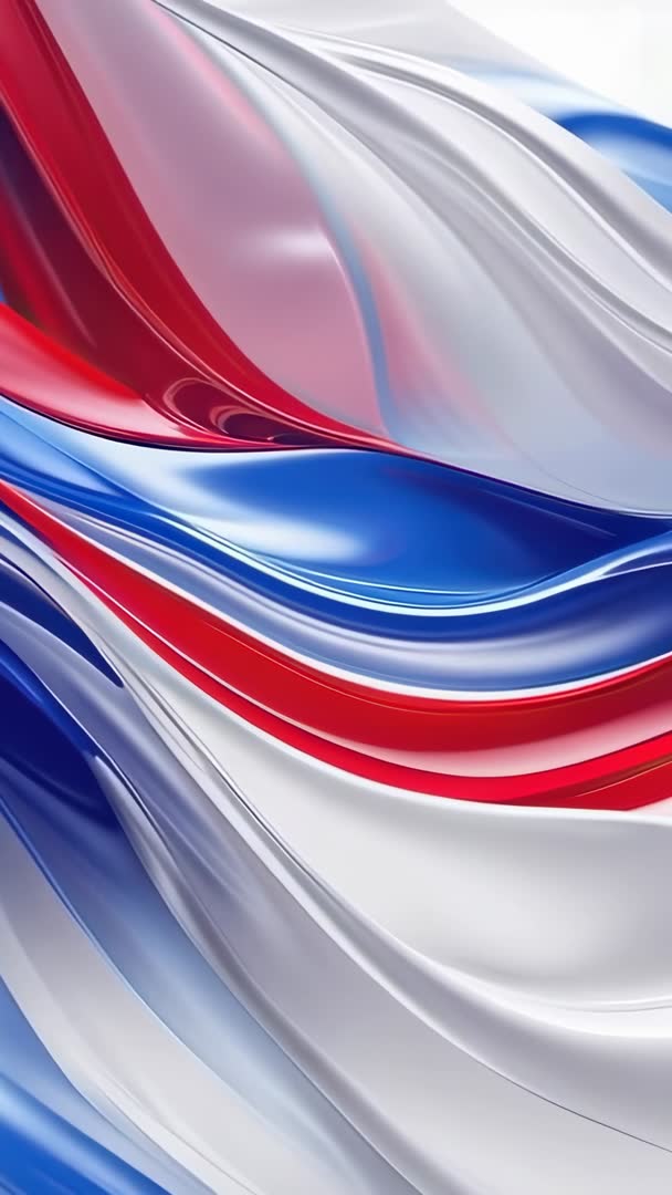 AI Generated Image. Flowing red white blue silk-like ribbons moving across vertical frame, creating smooth fluid waves and glossy reflections. Abstract motion loop featuring seamless transitions, soft highlights, and rich color gradients, designed for continuous playback. Ideal for social media stories, mobile wallpapers, promotional intros, website hero loops, broadcast graphics, stage backdrops, and event visuals. Working well for patriotic campaigns, sports openings, tech product reveals, and modern branding. Easy to customize by looping, color grading, overlaying text and logo, and applying slow zoom or parallax for added depth. Delivering polished cinematic look and versatile visual interest for marketing, presentations, UI backgrounds, and live visuals.