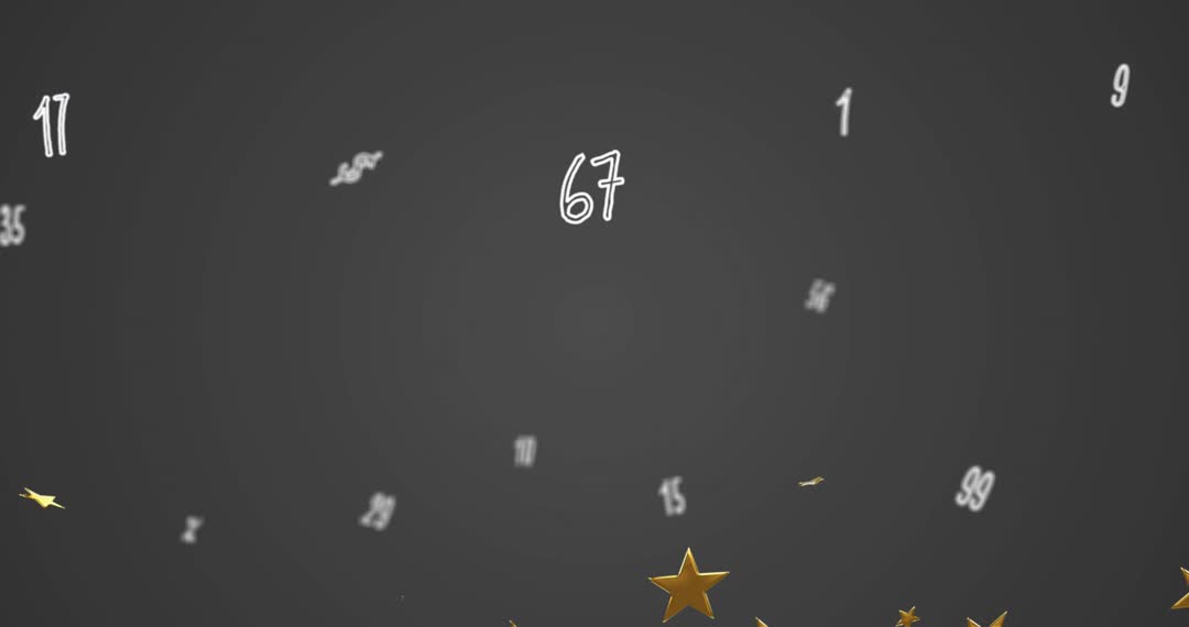 Abstract motion background showcasing a dynamic interaction of floating golden stars and shifting numeric figures, evocative of progression or chronological advancement. Suitable for use in multimedia presentations, video edits requiring a futuristic touch, or educational contexts illustrating growth and change.