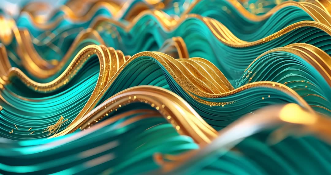- Flowing Teal and Gold Ribbons in Digital Animation
