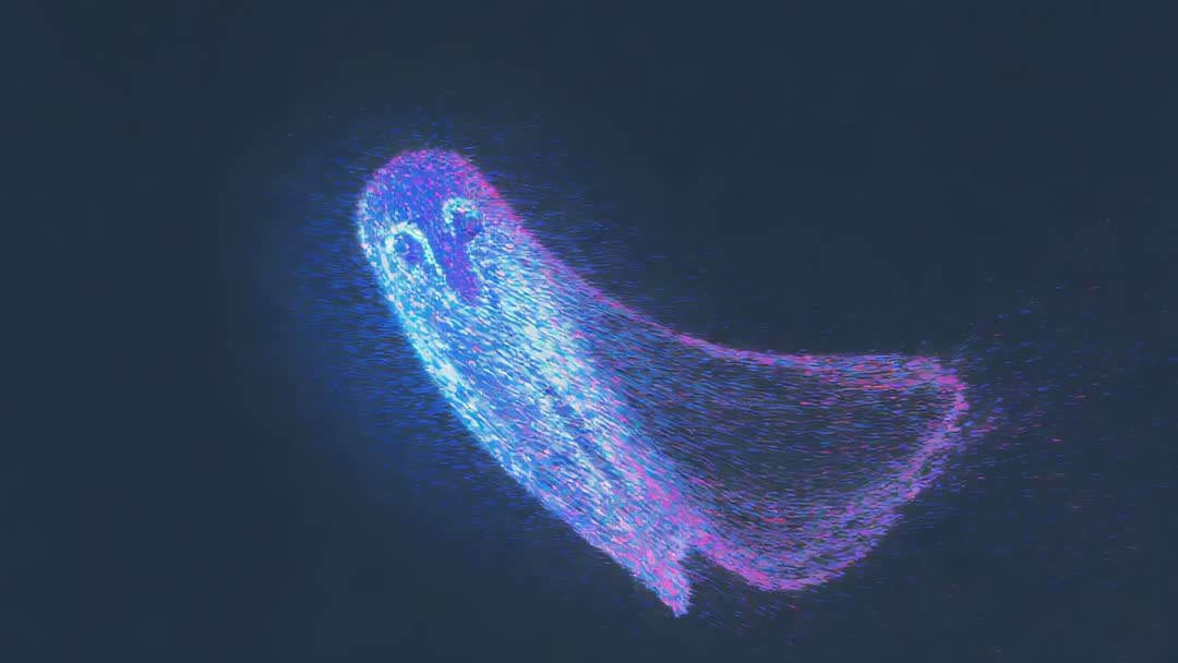 Fluorescent Particle Swarm Forming Abstract Ghostly Shape Video