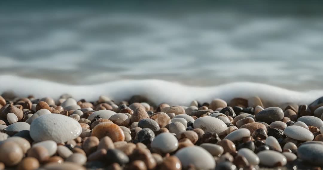 AI Generated Video. Waves gently caressing colorful pebbles, capturing the ebb and flow of the maritime landscape. Ideal for themes of peace, reflection, and the beauty of nature's cycles, making it suitable for blogs, travel content, or environmental conservation messages.