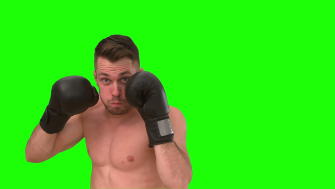 - Focused Boxer Punching in Action with Green Screen Background