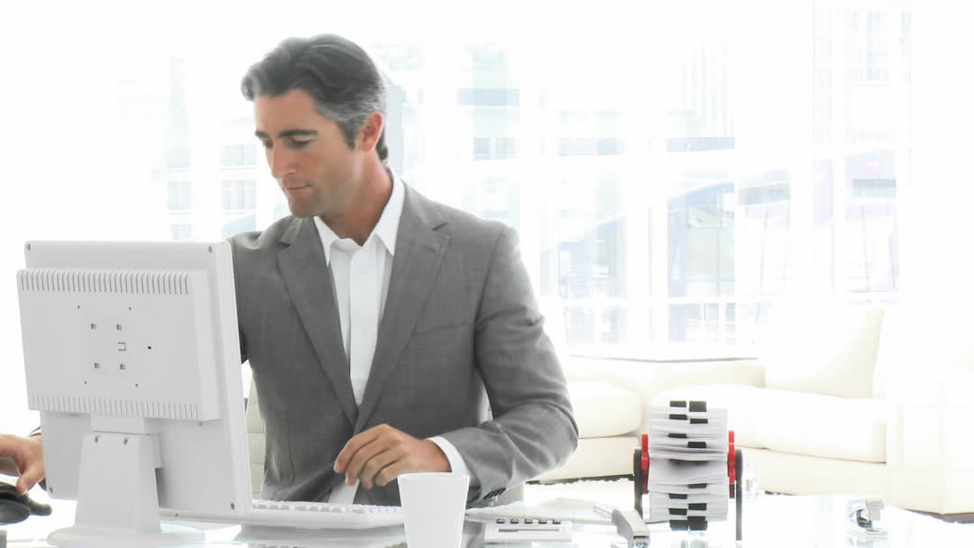 Focused Business Professional Calling and Working at Computer in Modern Office Video