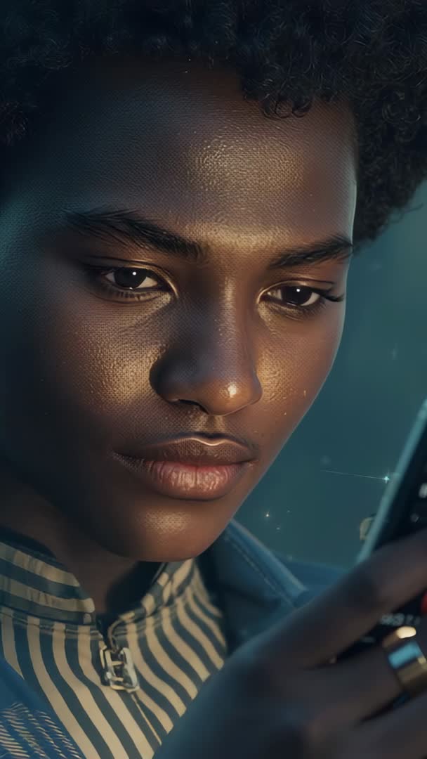 AI Generated Image. Showing close-up vertical clip of woman holding smartphone inside car, scrolling with focused gaze and soft ambient lighting. Capturing skin texture, striped top detail and hand with ring for authentic modern portrait that highlights mobile interaction and concentration. Working well for mobile app promotions, social media campaigns, connectivity and tech commercials, influencer content, and editorial stories about digital habits or commuting life. Pairing easily with headline text, app mockups, or UI walkthrough overlays for vertical ad formats. Suitable for Instagram Reels, TikTok clips, mobile demos, website hero banners, and lifestyle articles about online communication.