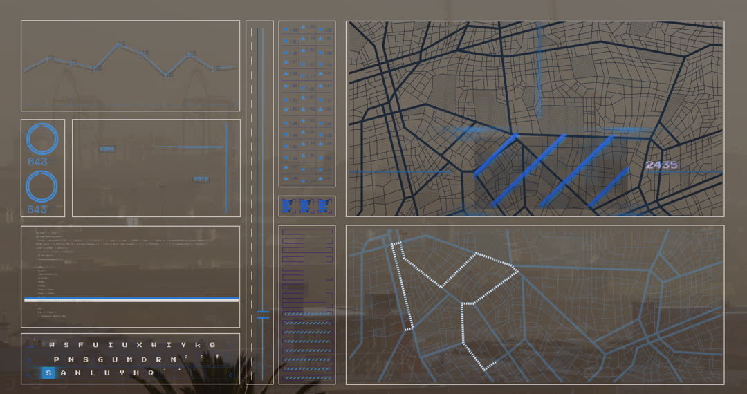 Digital overlay of a cityscape enveloped in fog with technology interfaces depicting global communications and data connectivity. Useful for illustrating concepts in digital infrastructure, urban planning, smart city technology, and global networking. Suitable for modern tech presentations, industry articles, and educational materials.