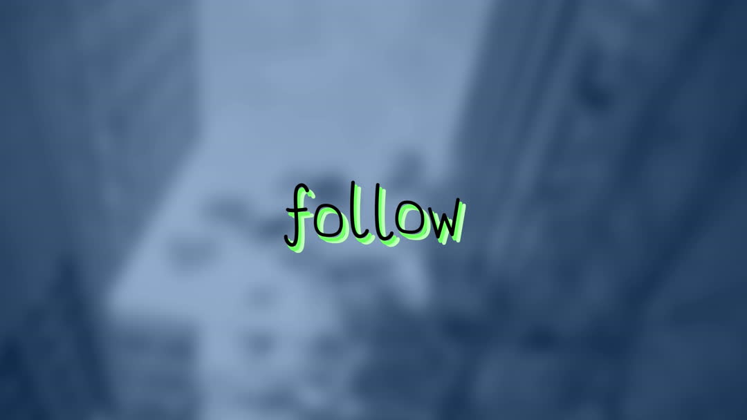 Blurred urban background enhances focus on the animated 'follow' text. Perfect for social media posts, digital marketing campaigns, or promotional content aimed at increasing social engagement and connection in a modern urban context.
