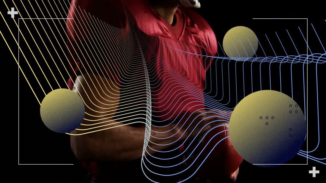 Football Player in Dynamic Abstract Digital Wave Overlay Video