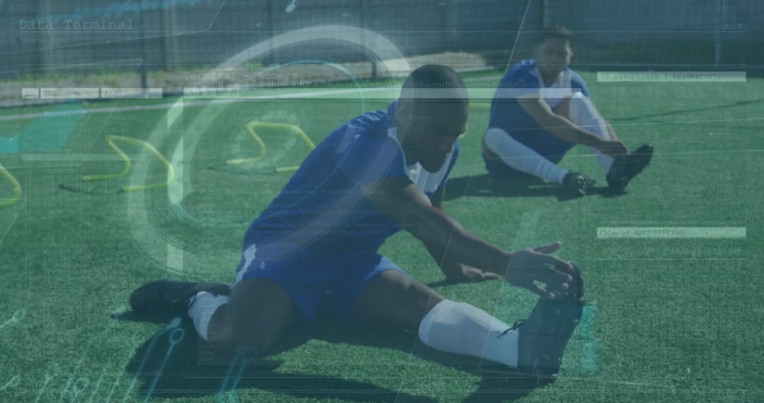 - Football Players Stretching with Digital Overlay