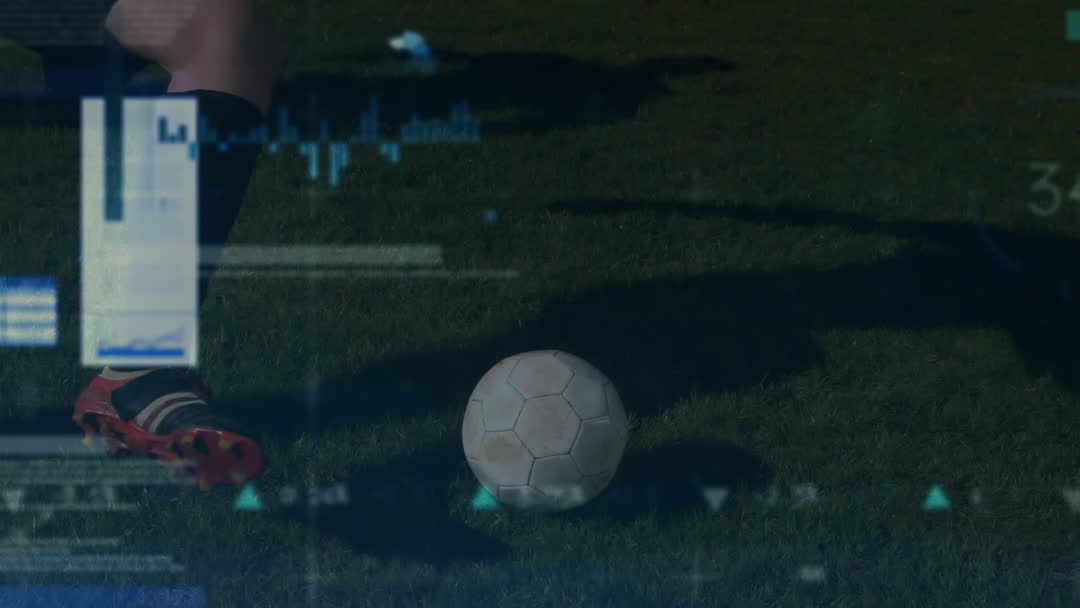 - Footballer Managing Ball on Field with Digital Data Overlay