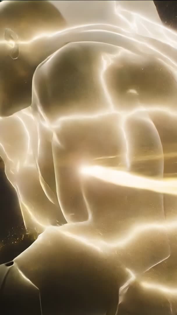 AI Generated Video. Showing vertical 9:16 video of heroic silhouette forging glowing golden armor inside dark void with cascading sparks, pulsing energy streaks, and warm cinematic glow. Offering dramatic slow-motion action for hero reveal, title sequence, trailer opener, game cinematic, or social media reel. Enhancing branding for fantasy and sci-fi projects, powering mobile game promos, accenting VFX reels, supporting concept art presentations. Delivering high-contrast metallic gold palette, abstract organic armor shapes, seamless loop potential for background use. Providing flexible use for motion designers, video editors, ad agencies, game studios, and content creators seeking epic mystical atmosphere.