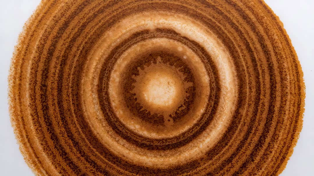 - Forming concentric granular brown rings on white surface - animated radial texture loop
