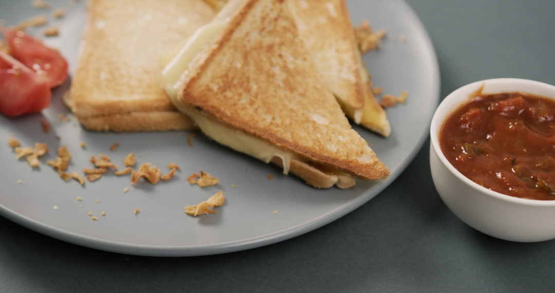 Freshly Made Cheese Sandwich with Tomato and Salsa Video