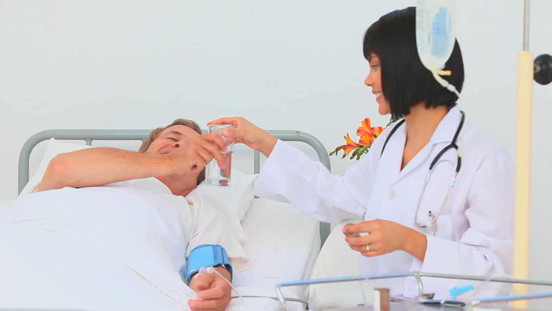 - Friendly Nurse Giving Medication to Hospitalized Patient