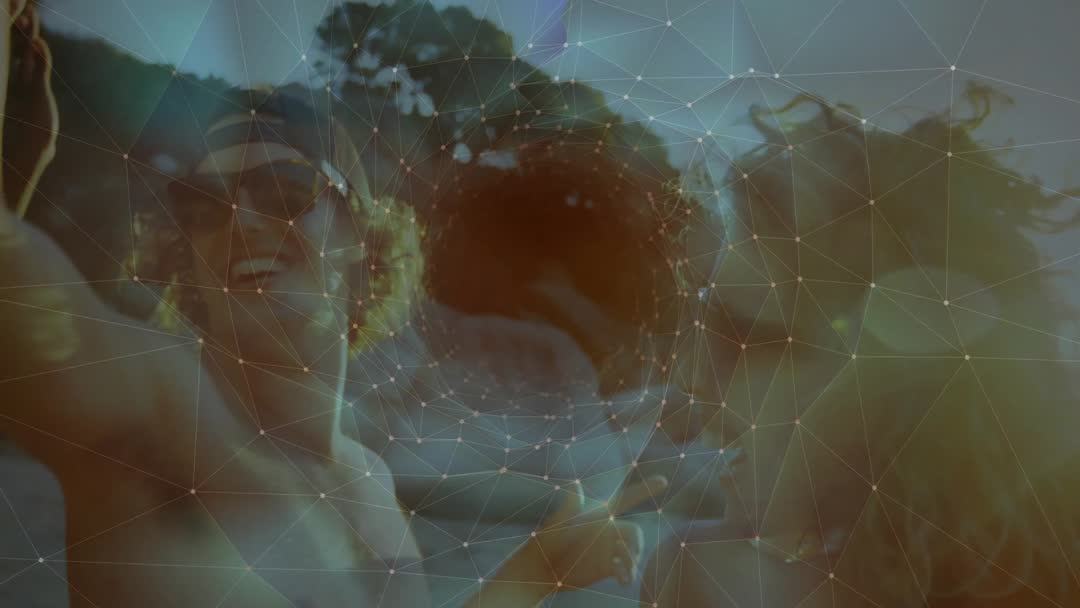 - Friends Enjoying Convertible Ride with Digital Network Overlay
