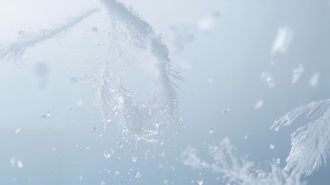 AI Generated Video. Showing frosted seedhead shedding ice crystals and glistening water droplets in slow motion macro. Featuring delicate filaments and suspended droplets against soft blue background with gentle bokeh and high-key lighting. Conveying fragile beauty of winter plant life, evoking calm, purity, and quiet motion. Working well for nature documentaries, seasonal commercials, product backgrounds, wellness and spa promotions, editorial layouts, social media posts, and ambient loops for retail displays. Pairing with ambient piano or airy synth, applying subtle slow zoom or parallax for added depth, cropping for vertical formats, adding soft vignette and color grading toward cool tones. Offering compatibility with 4K projects, looping backgrounds, and close-up scientific visuals.