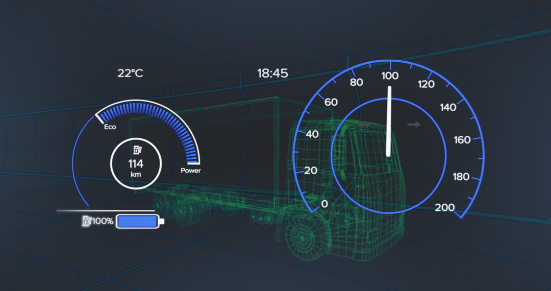 - Futuristic 3D Animated Truck with Battery and Speed Display