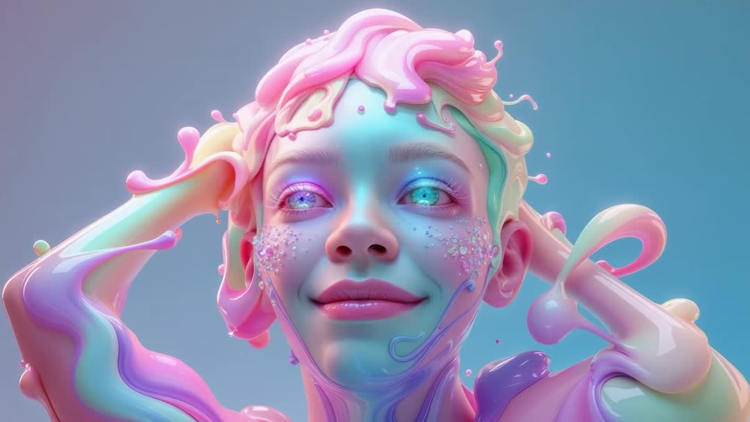 Futuristic 3D Bust with Pastel Fluid and Pink Aqua Eyes in Minimalistic Style Video