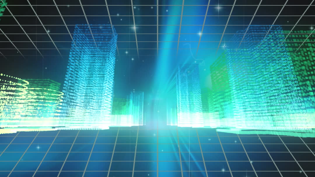 Futuristic 3D Cityscape Over Digital Metaverse Grid Video