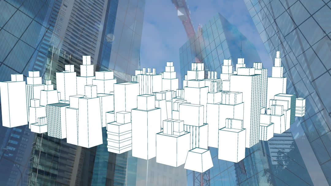 - Futuristic 3D Digital Model Overlay on Modern Cityscape