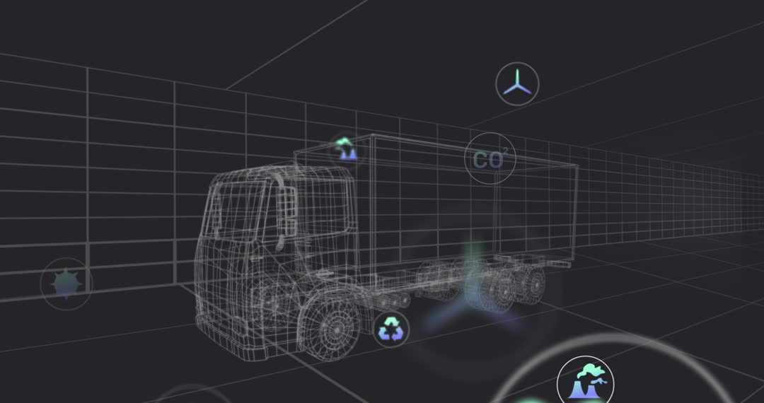 Detailed 3D vehicle model on a grid with eco-conscious elements like carbon, recycling, and energy efficiency symbols. Perfect for representing advancements in sustainable transport, automotive innovation, and digital engineering ideas. Suitable for use in presentations related to futuristic vehicle design, engineering showcases, or environmental awareness advertisements.
