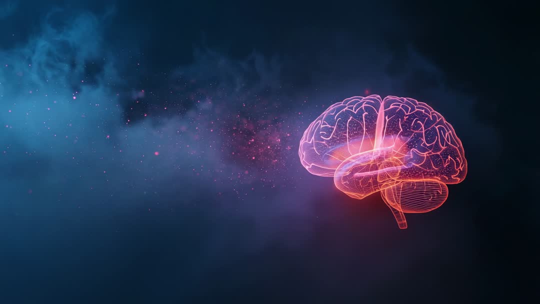 Futuristic 3D Neon Brain Model Emerging in Digital Mist Video