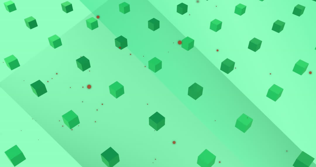 - Futuristic 3D Rotating Green Cubes and Red Dots