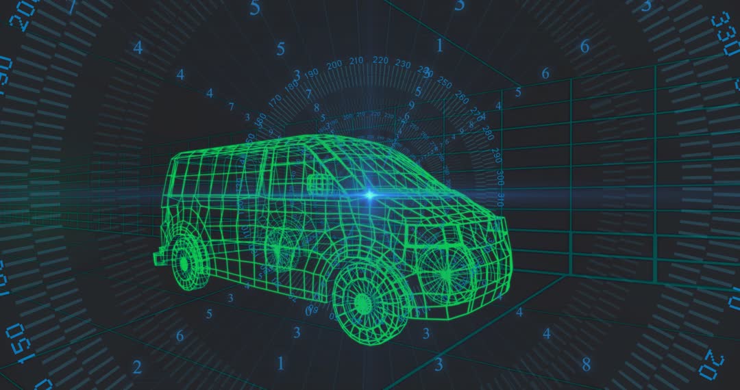 - Futuristic 3D Wireframe Van with Digital Grid Overlays