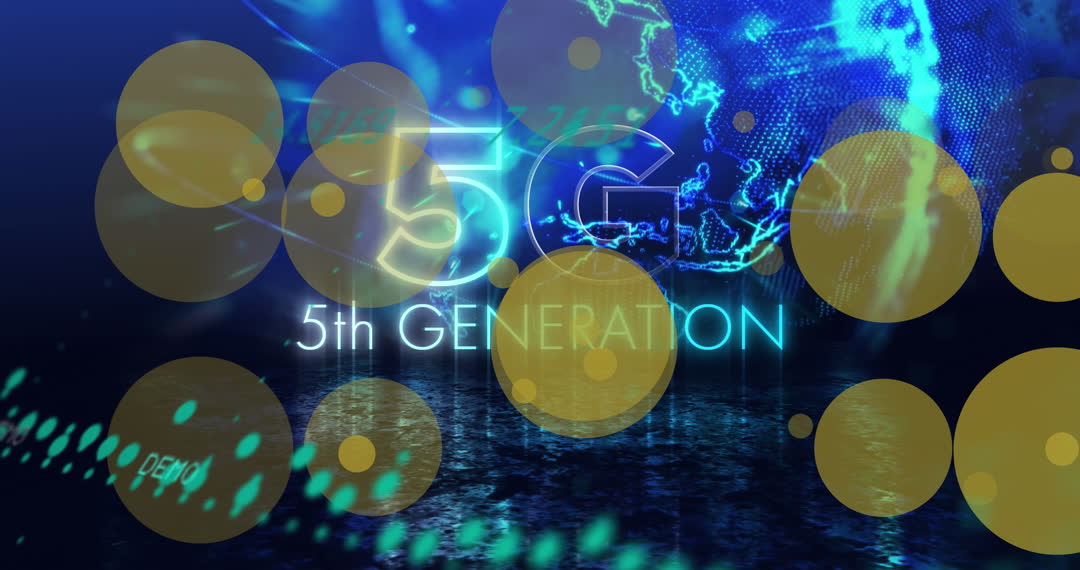 This visual representation features an animated depiction of 5G technology, with a digital globe over a dark, abstract background. Ideal for projects centered on technology advancements, future communications, and global networking. Useful for tech industry presentations, educational materials, and promotional content that emphasizes connectivity innovations.