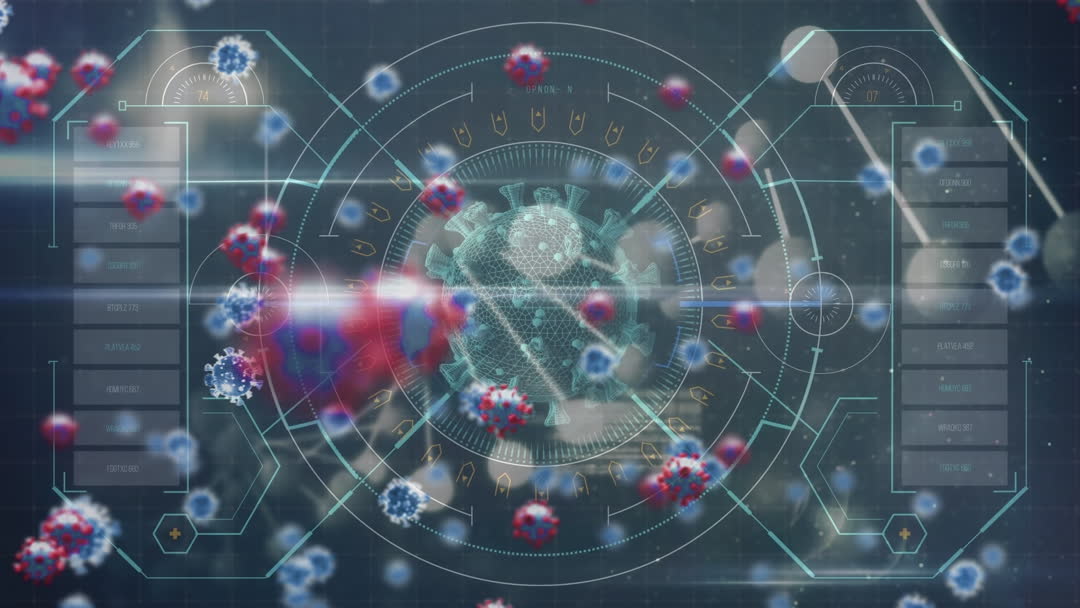 href="https://pikwizard.com/video/futuristic-analysis-of-covid-19-cells-and-dna-data/54d31624b06e86b84ec8492335a5adb7/"