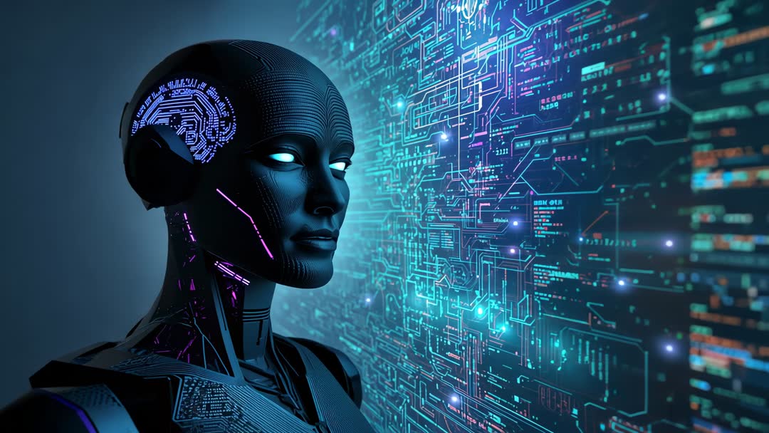 AI Generated Image. Video showing sleek humanoid android rotating from profile toward front while syncing to glowing network data wall. Close-up framing highlighting sculpted facial features, illuminated eyes, and exposed neural circuit in temporal region. Background featuring animated holographic interface with layered code, node links, and pulsing data paths in cyan and magenta tones. Visual language combining neon lighting, fine circuitry texture, and subtle motion to convey advanced AI cognition and secure data transfer. Usage ideas: ideal for tech marketing campaigns, AI research presentations, startup pitch videos, keynote openers, cybersecurity awareness pieces, sci-fi trailers, website hero backgrounds, and explainer content on neural networks. Production tips: pair with cinematic ambient score, use slow-motion reveal for dramatic emphasis, export loopable clip for background playback, and layer custom UI elements for product demos and motion graphics.