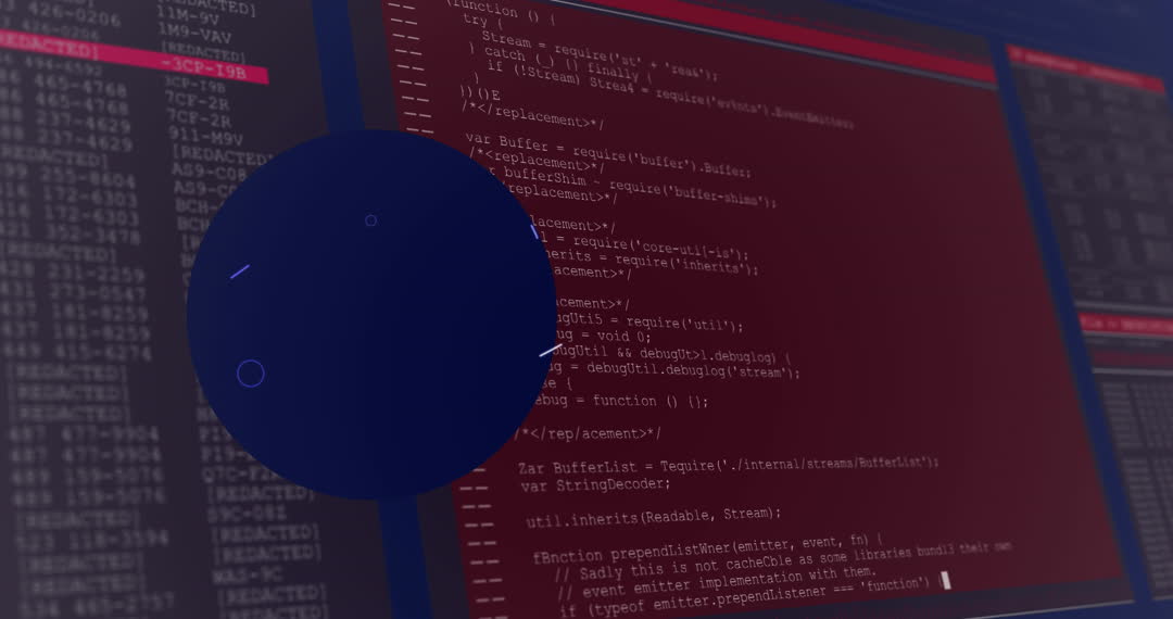 Stylized digital animation depicting an eye overlay engaged with data screens full of codes. This visual represents concepts of data processing, AI surveillance, or global network connections, ideal for use in presentations on cybersecurity, IT solutions, or innovation in digital spaces.