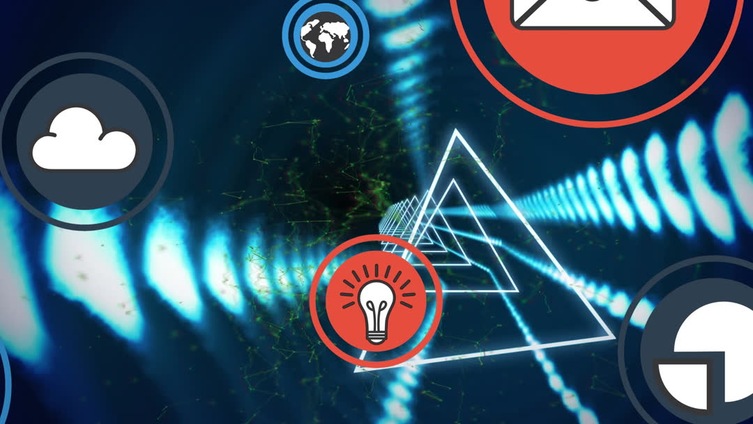 - Futuristic Animation of Media Icons and Digital Shapes Highlights Technology Interface