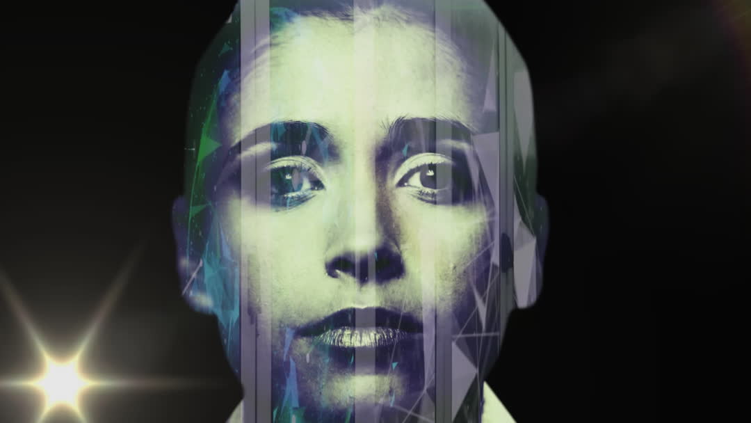 Futuristic Animation with Light over Woman's Face in Digital Space Video