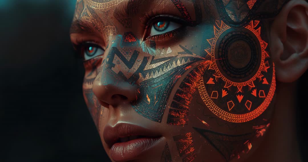 - Futuristic Bioluminescent Tattoos on Woman's Face