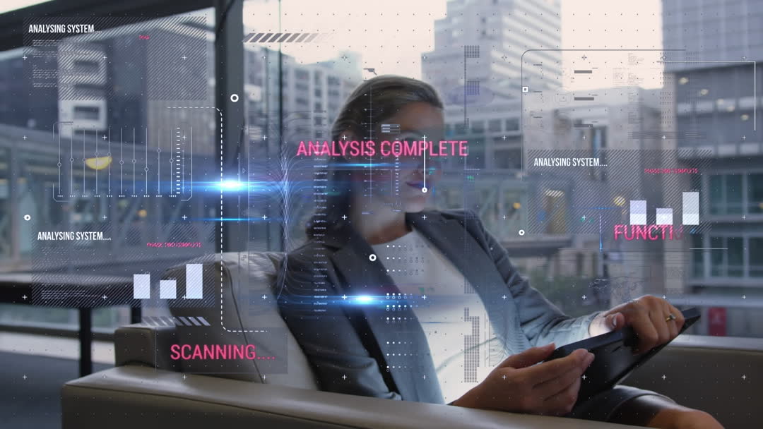 - Futuristic Businesswoman Analyzing Financial Data on Tablet