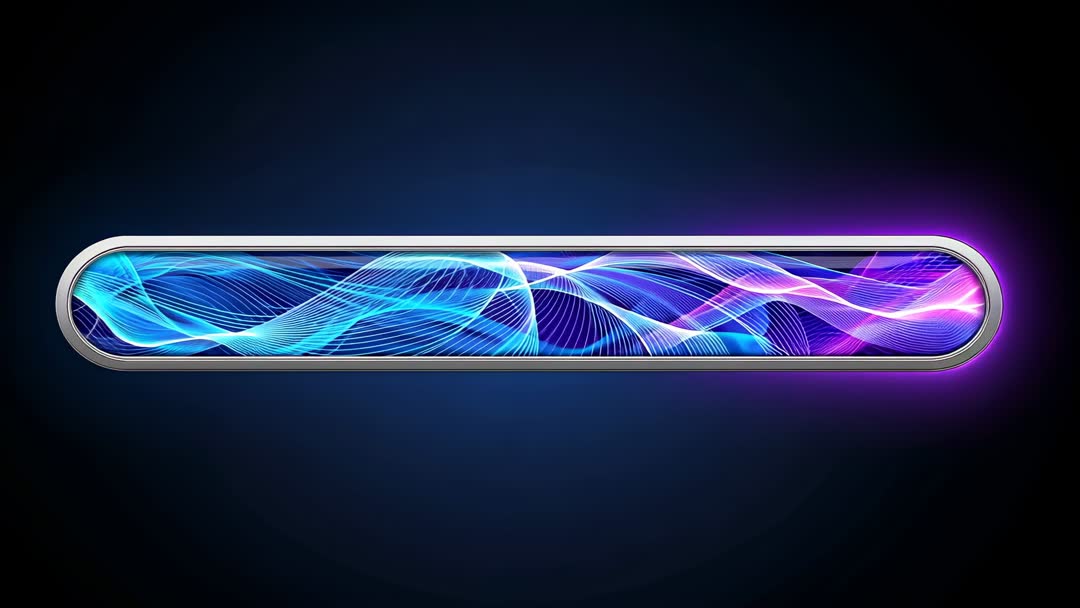 AI Generated Image. Video showing sleek capsule display containing animated neon waves moving across glass panel. Waves flowing from left to right and shifting from electric blue to vivid purple, creating dynamic gradient glow. Metal bezel framing display and halo glowing soft purple light, enhancing depth and contrast. Loopable motion graphic working well as background for UI elements, progress indicators, app loaders, broadcast lower thirds, title bars. Creative teams using clip for tech promo, AI branding, gaming overlays, streaming overlays, website hero banners, corporate presentations. Edit suggestions including slowing motion for dramatic reveal, speeding loop for energetic intro, cropping to banner formats or overlaying bold typography in negative space. Delivering modern, high tech visual accent for product demos, event visuals, social reels, marketing campaigns.