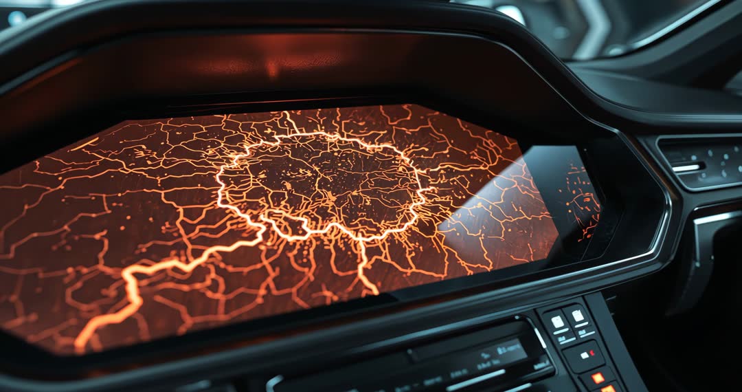 - Futuristic Car Dashboard Display with Pulsating Orange Patterns