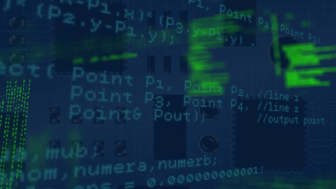 Visually compelling animation depicting dynamic data streams and programming text set against a dark background. Useful for illustrating technology advancements, digital transformation, or global business statistics. Ideal for tech-related designs, backgrounds, and presentations about data science or software development.