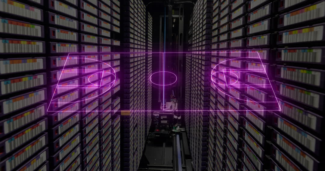 Futuristic Concept of Digital Stadium Overlay in a Data Center Video
