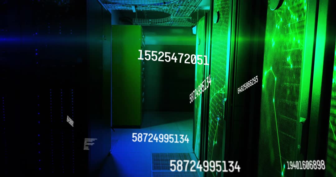 - Futuristic Cybersecurity Numeric Codes in Dimly Lit Server Room