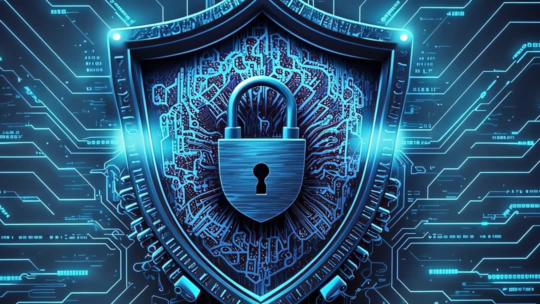 - Futuristic Cybersecurity Shield with Digital Padlock
