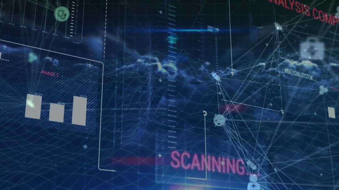 This clip presents a futuristic digital interface showcasing waveform animations, pulsing visuals, and dynamic data streaming combined with network node interactions for system analysis. Ideal for illustrating concepts in cybersecurity, digital innovation, and technology-driven data visualization. Suitable for use in technology presentations, educational resources, or promotional materials highlighting advanced tech solutions.