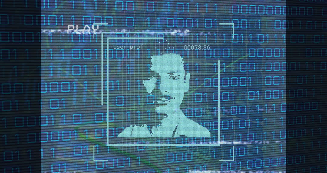 Futuristic digital interface depicting data analysis and user avatar on binary code background. Ideal for presentations, articles on technology and data management, or illustrating themes of virtual interactions and information systems.
